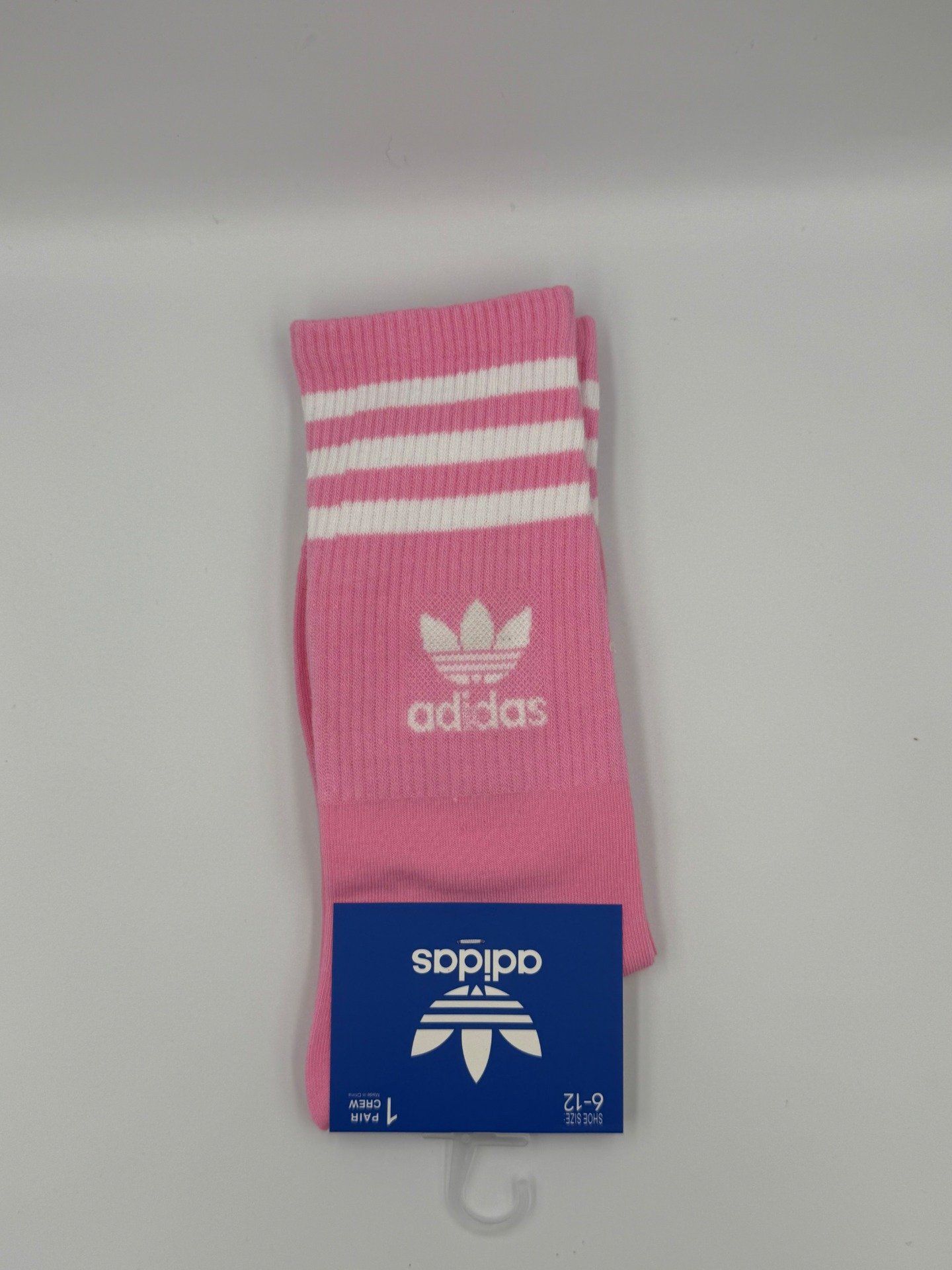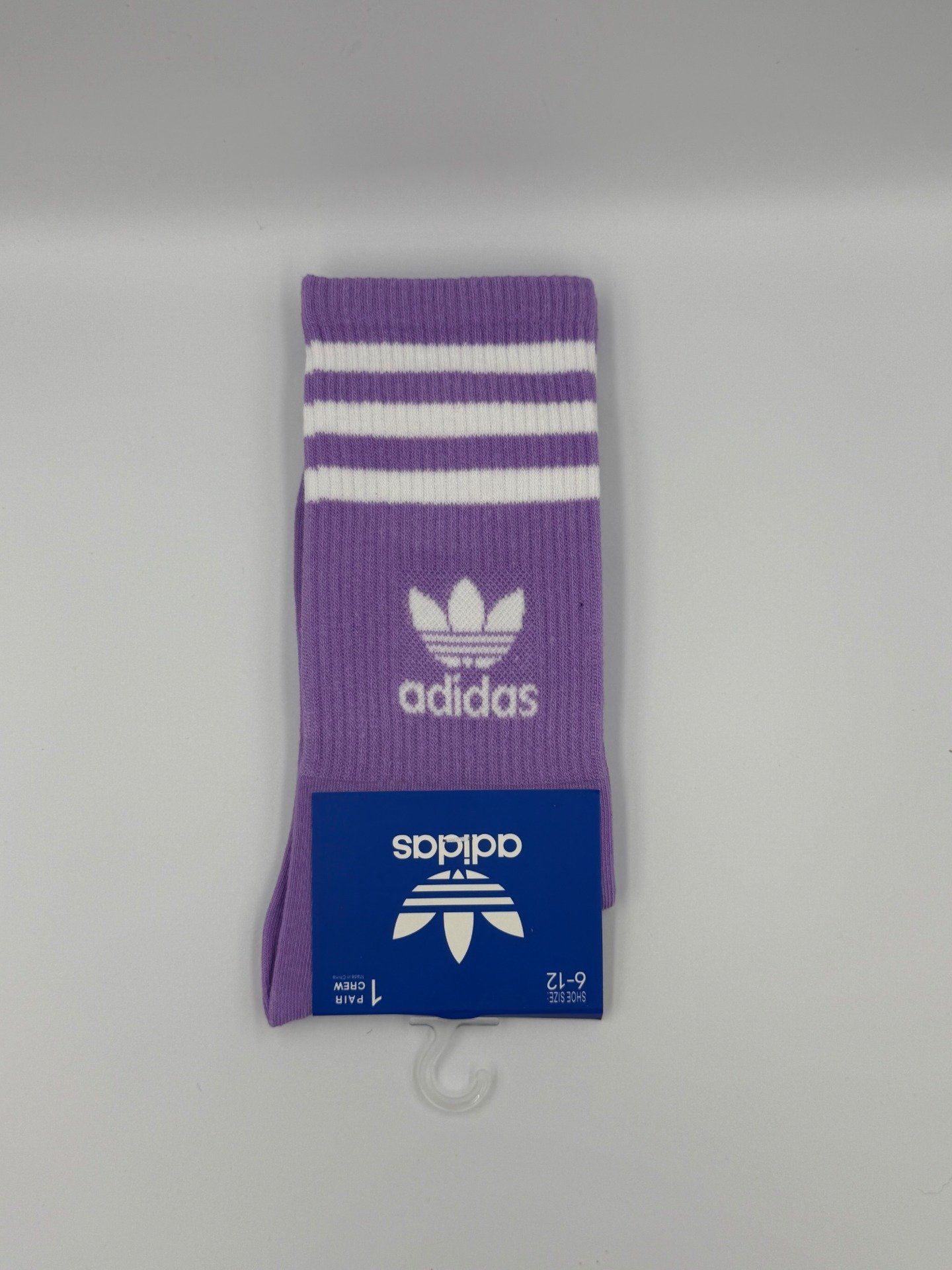 Paire de chaussettes Adidas mi-cheville aux couleurs pastel avec logo iconique et bandes Adidas. Style streetwear et confortable pour le sport ou le quotidien.